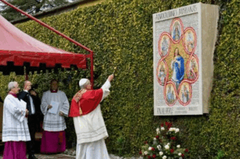 ĐTC Lêô XIV làm phép bức tranh khảm Đức Mẹ và tượng Thánh Rosa được đặt tại Vườn Vatican