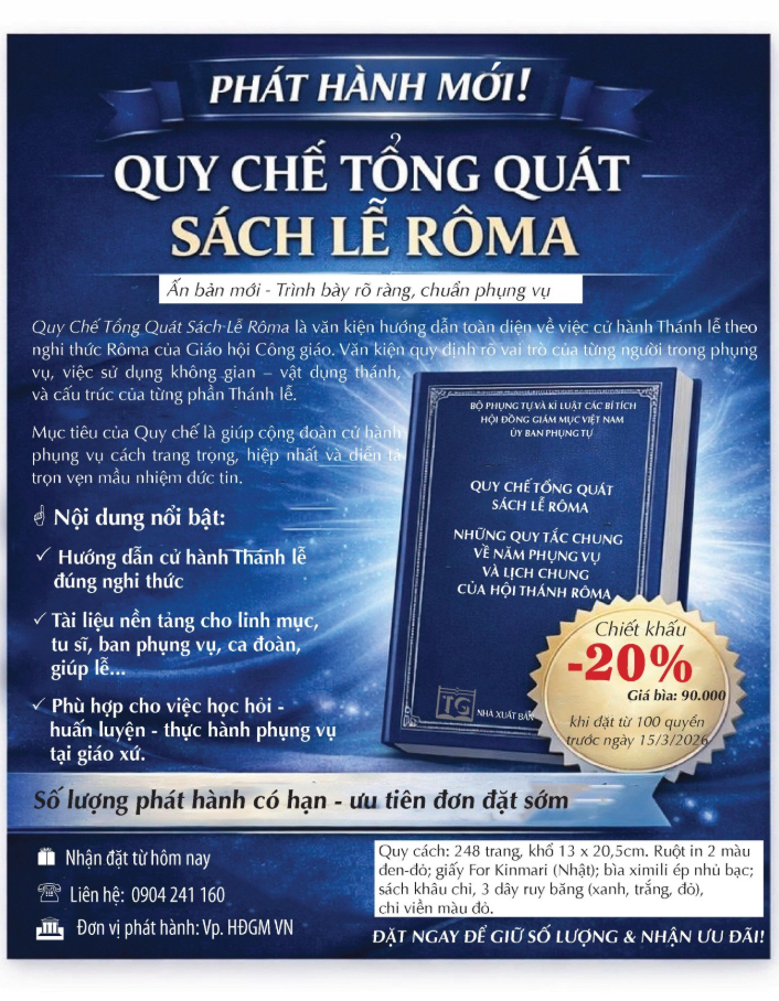Sau đây là thông báo của Văn phòng Hội đồng Giám mục Việt Nam về việc phát hành Quy chế tổng quát Sách lễ Rôma vào ngày 19/3/2026.