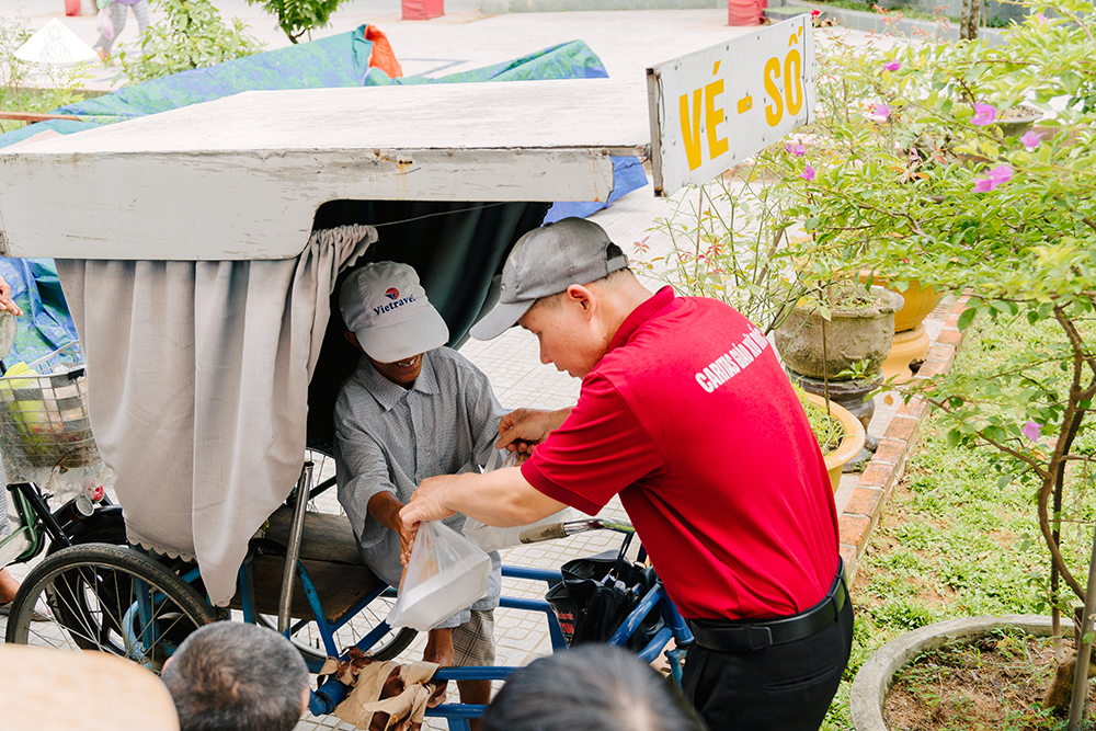 Hằng tuần vào ngày thứ 5, thứ 6, các anh chị em Ban Caritas đi đến từng nhà để trao các phiếu nhận cơm cho từng anh chị em, để đảm bảo phục vụ tốt nhất, không bị thiếu hụt.