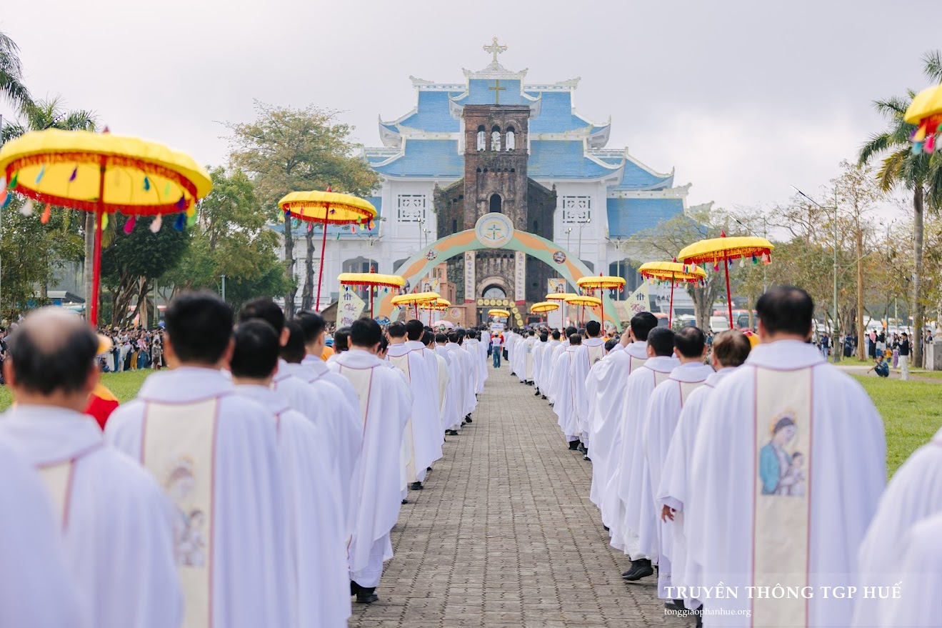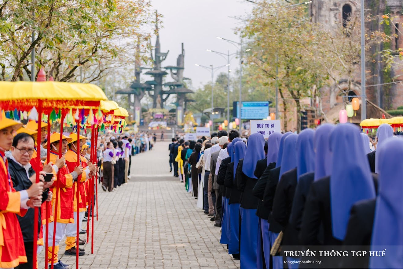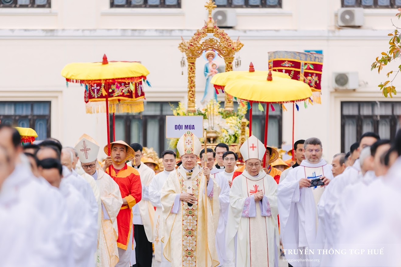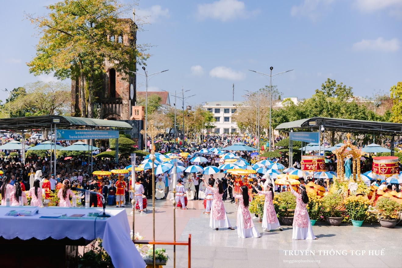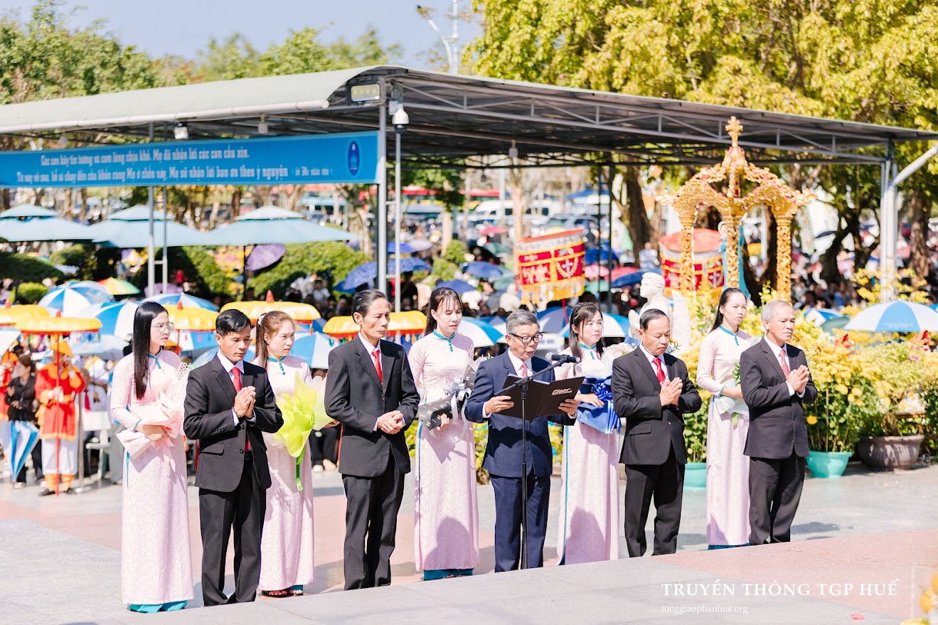 “Chúng con về bên Mẹ như một người con đi xa, mệt mỏi vì những lo toan, nhiều lúc yếu đuối vì tội lỗi và sợ hãi vì tương lai. Mẹ đã từng cúi xuống với đoàn con ở chốn này, xin Mẹ cũng cúi xuống trên đời sống chúng con, những chỗ chúng con đang rạn nứt, những nỗi buồn chúng con đang còn giấu kín, những vết thương chúng con chưa dám gọi tên. Xin Mẹ phủ áo choàng bình an trên mọi người và trên từng gia đình chúng con.” – Đó là lời thưa đại diện cho tâm tình của những người hành hương về bên Đức Mẹ La Vang, tham dự cuộc rước kiệu và Thánh lễ Hành hương Minh niên Bính Ngọ 2026.