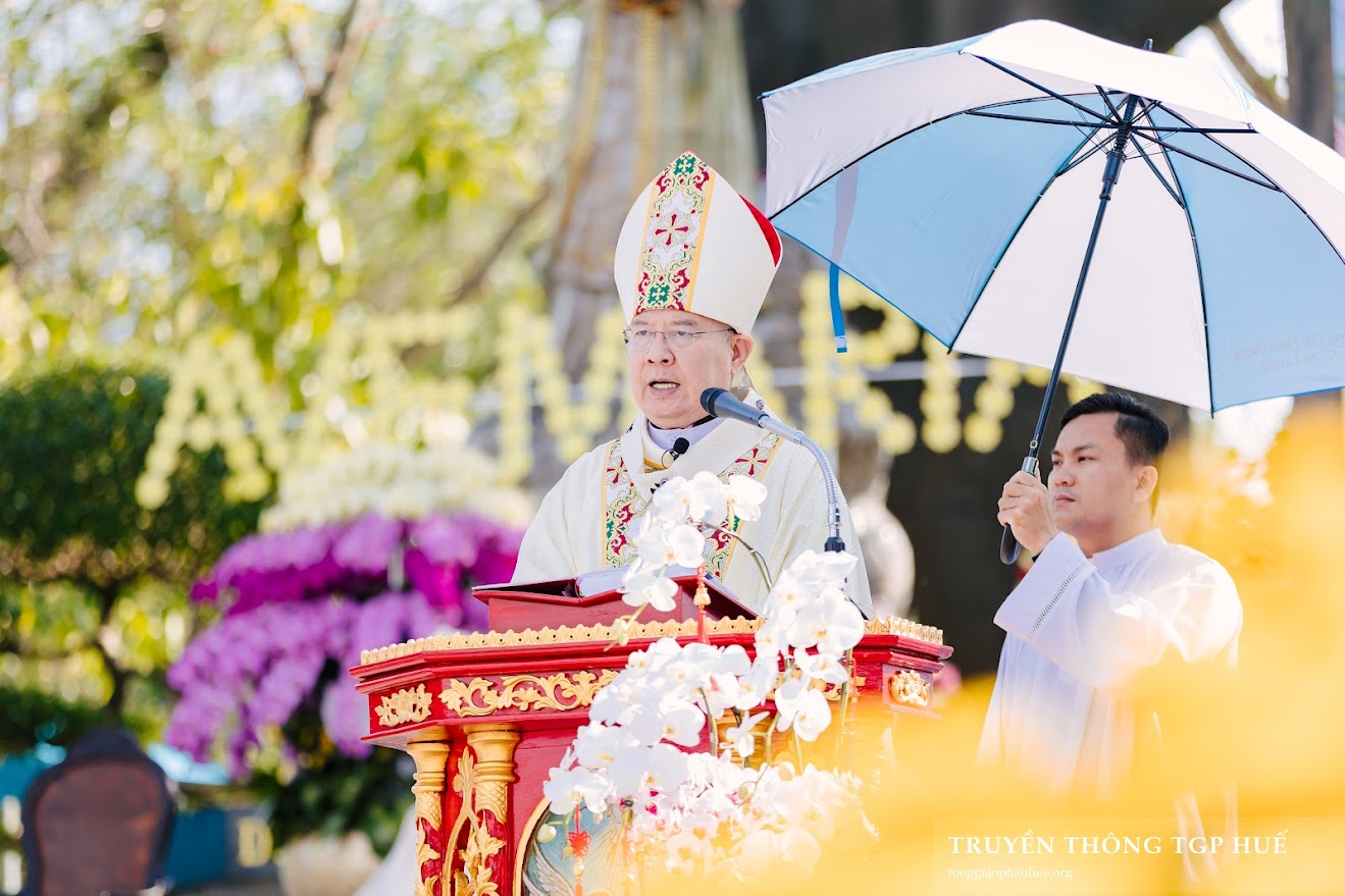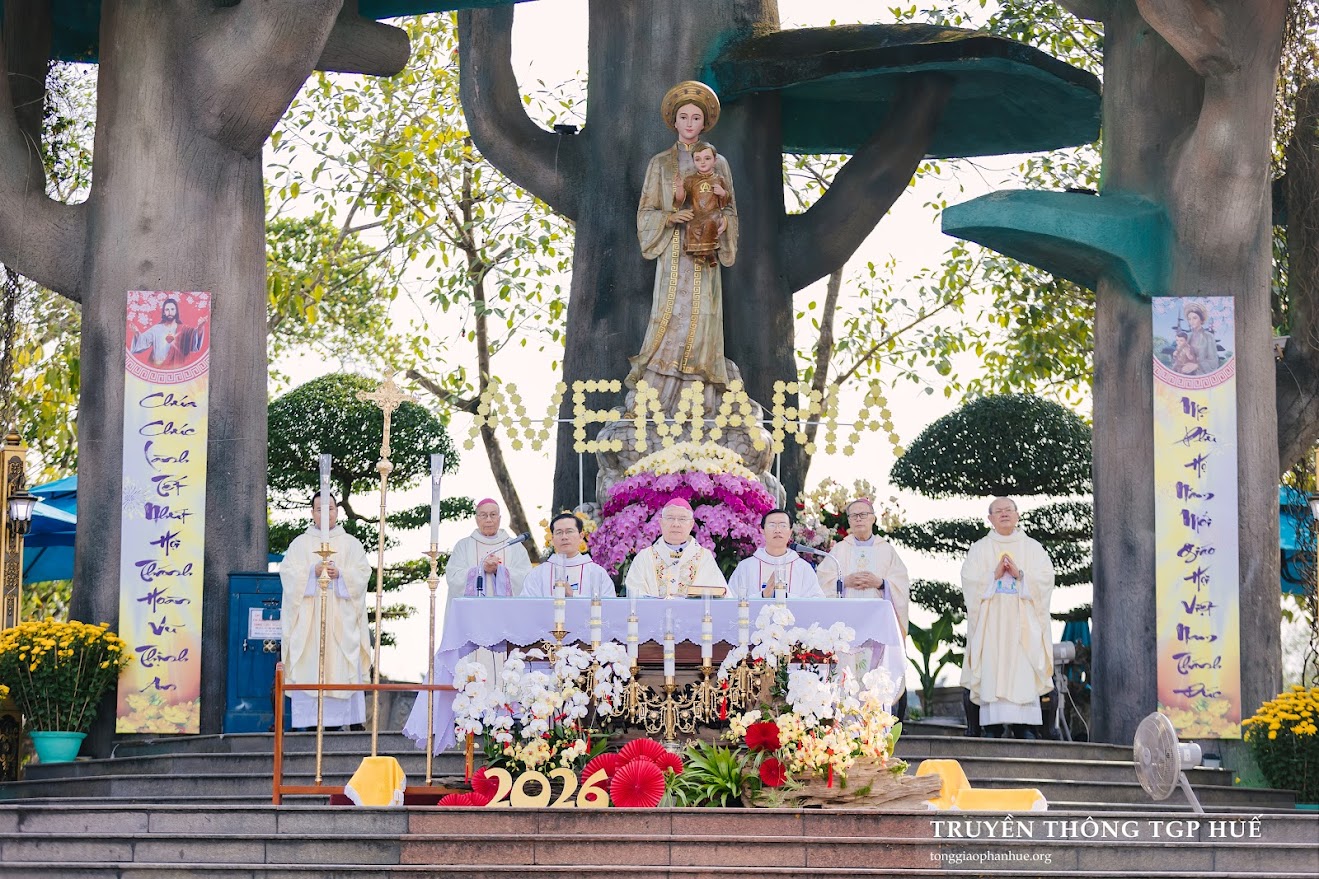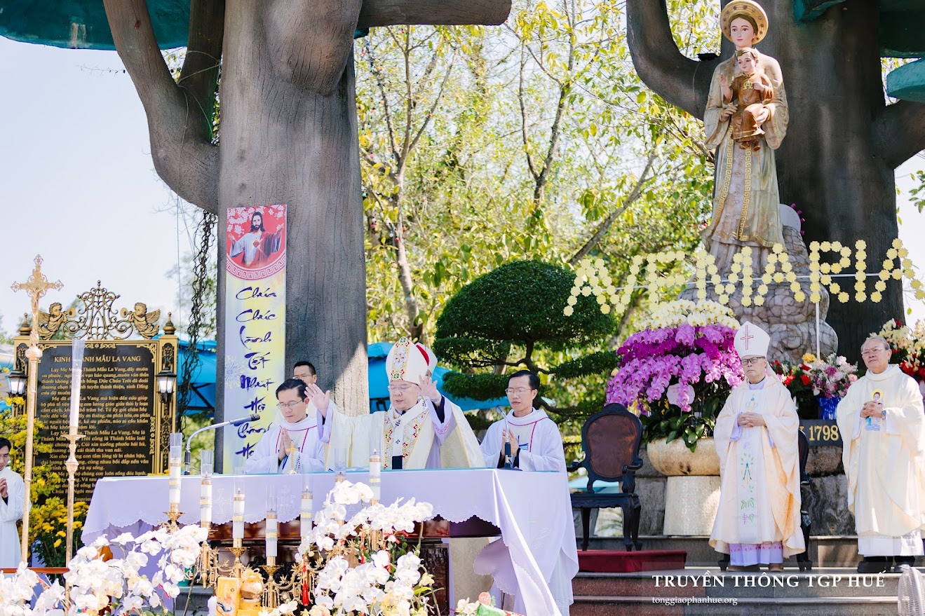 Đứng trước ranh giới thời gian giữa năm cũ và năm mới âm lịch, Đức TGM Giuse cho biết khi về với Mẹ La Vang, có người tạ ơn vì thành công, vì gia đình bình an, vì công việc ổn định. Nhưng cũng có những người những ưu tư vì mất mát, bệnh tật, khó khăn, kể cả nước mắt. “Dẫu vui hay buồn, Thiên Chúa vẫn luôn hiện diện, Người là Chúa của muôn loài tạo vật, là Chúa của thời gian và lịch sử, là Chúa của cuộc đời từng người chúng ta.[…] La Vang từng là nơi tổ tiên chúng ta ẩn náu. La Vang đã trở thành dấu chỉ rằng: Thiên Chúa không bỏ rơi dân Người.”