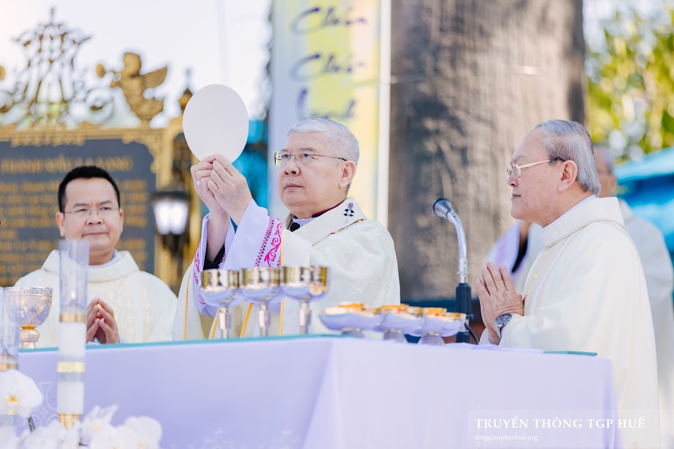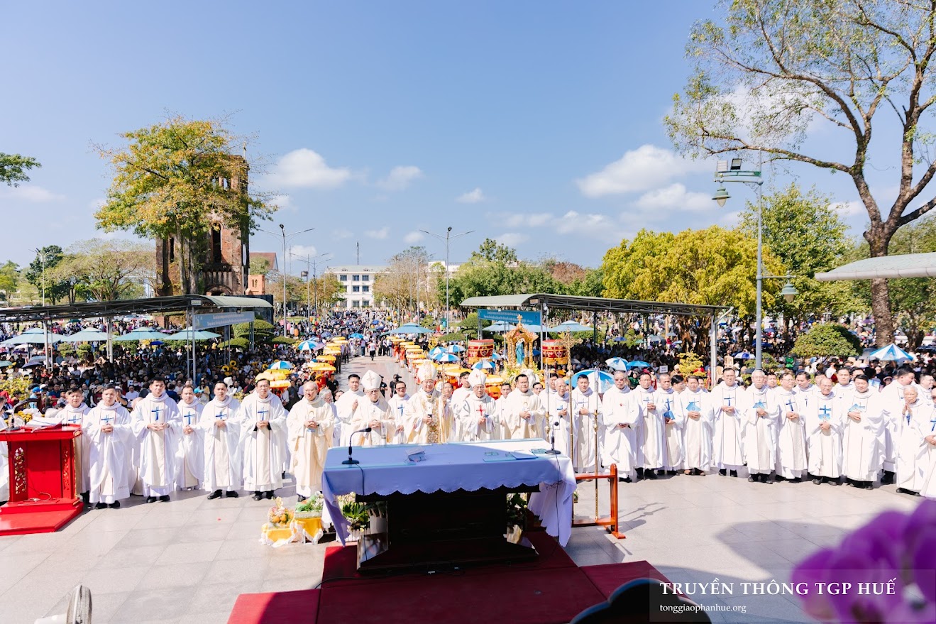 Ngay sau đó, Đức TGM Giuse đã chủ tế Thánh lễ Minh niên để cầu bình an cho Giáo hội, TGP Huế và tất cả mọi người.