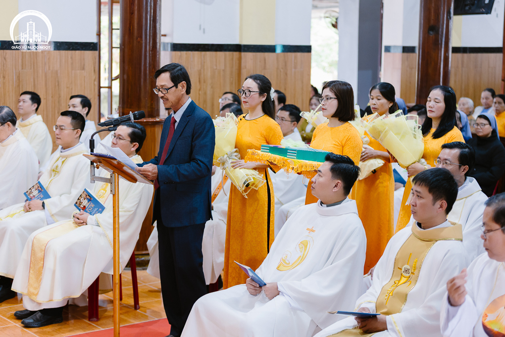 Cuối Thánh lễ, ông Chủ tịch Hội đồng Giáo xứ Nước Ngọt bày tỏ tâm tình chúc mừng Tân Linh mục Giuse cùng quý Tân Linh mục đồng môn. Đồng thời cám ơn quý Đức Ông, quý Cha và mọi thành phần trong nước cũng như hải ngoại đã về với Giáo xứ Nước Ngọt trong ngày hồng ân hôm nay.