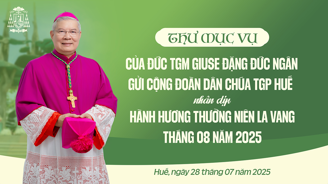 Mùa hân hoan của dịp đại lễ mừng kính Đức Mẹ Hồn Xác Lên Trời, ngày 15.08 hằng năm sắp đến với chúng ta. Đây cũng là ngày hội ngộ hành hương Đức Mẹ La Vang thân yêu của toàn thể cộng đoàn dân Chúa Tổng Giáo phận và các tín hữu khắp nơi quy tụ về bên Mẹ Maria để dâng lời tạ ơn và khẩn nguyện Thiên Chúa quyền năng và yêu thương, qua sự hiển linh quyền phép của Mẹ tại Linh địa La Vang. Tôi xin được cùng với mọi tín hữu thành tâm của Chúa Kitô dâng tâm tình tin, cậy, mến lên Thiên Chúa và Mẹ Maria dấu ái, là Đấng Phù hộ các giáo hữu và là mẫu gương cậy trông của chúng ta trên cuộc hành trình trần thế, hướng về thiên quốc vĩnh cửu.