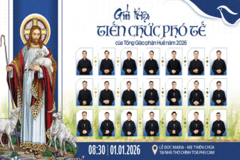 Đức TGM Giuse Đặng Đức Ngân đã chọn gọi quý Thầy sau đây lên chức Phó tế. Thánh lễ Truyền chức Phó tế sẽ do Đức TGM Giuse Đặng Đức Ngân long trọng chủ sự lúc 08g30 ngày 01.01.2026 tại Nhà thờ Chính toà Phủ Cam – TGP Huế.