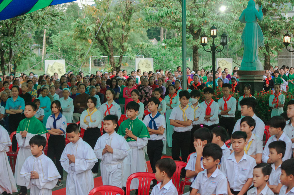 Thánh lễ khởi sự với đoàn rước Chủ tế của các em Giáo lý sinh và các anh chị Giáo lý viên. Mọi ánh nhìn hôm nay đều hướng về vị Mục tử mà trong ít giờ nữa thôi sẽ nói lời tạm biệt đoàn chiên của mình.