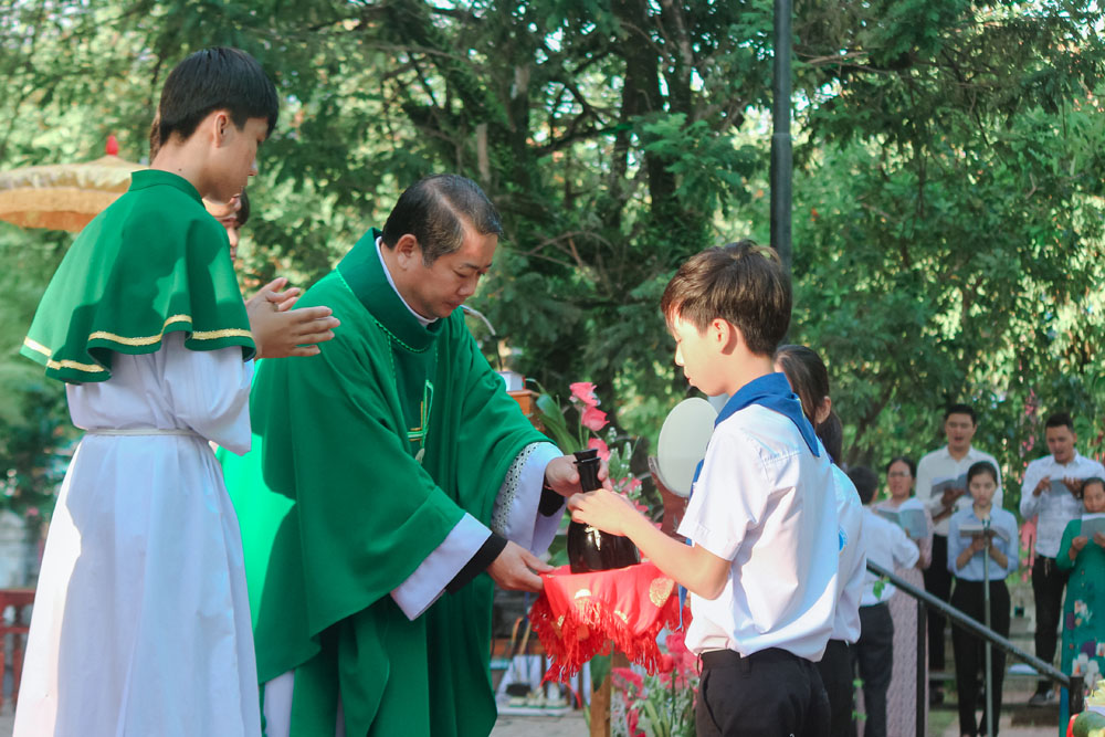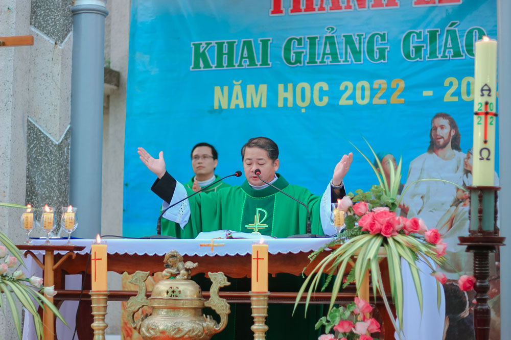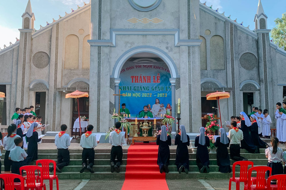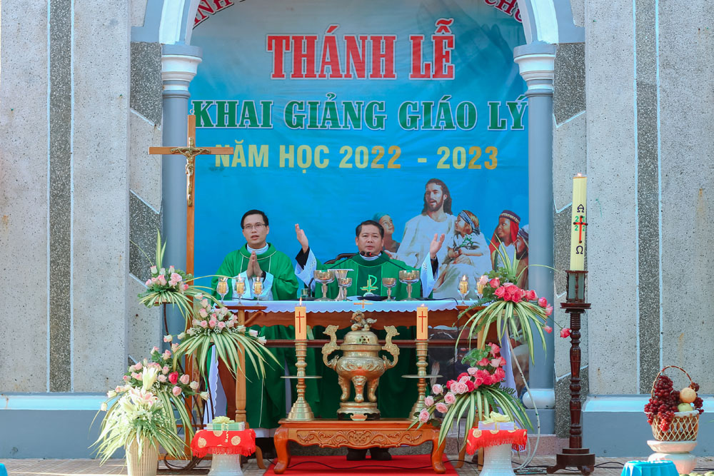 Thánh lễ hôm nay vừa là niềm vui của ngày Khai giảng năm học Giáo lý mới 2022-2023 của các em Giáo lý sinh, vừa sự bùi ngùi xúc động của mọi thành phần trong Giáo sở – Thánh Lễ cuối cùng Cha Phanxicô Xaviê dâng với tư cách là Linh mục Quản xứ.