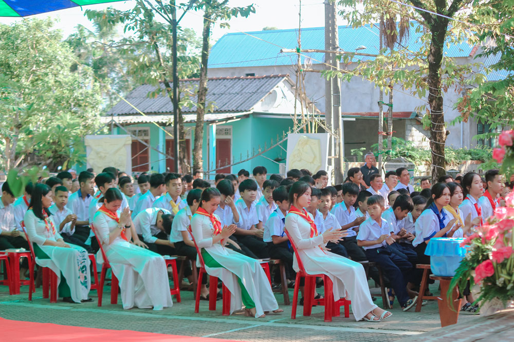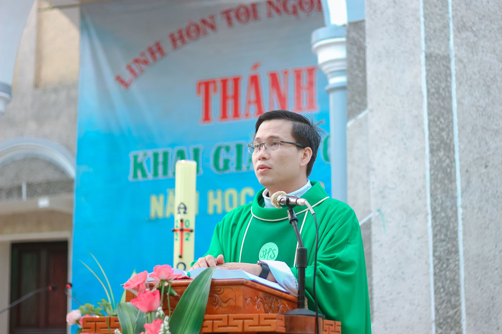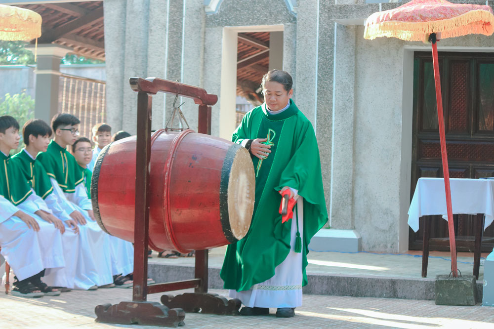 Sau lời nguyện hiệp lễ, Cha Quản xứ đã tuyên bố khai giảng năm học Giáo lý mới và gióng lên hồi trống khai trường.
