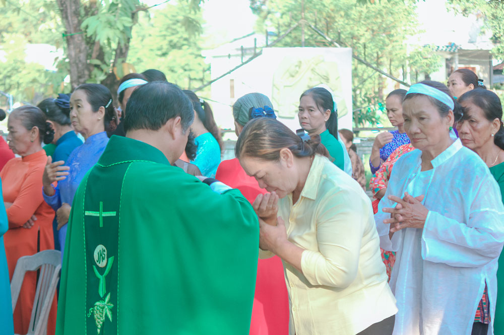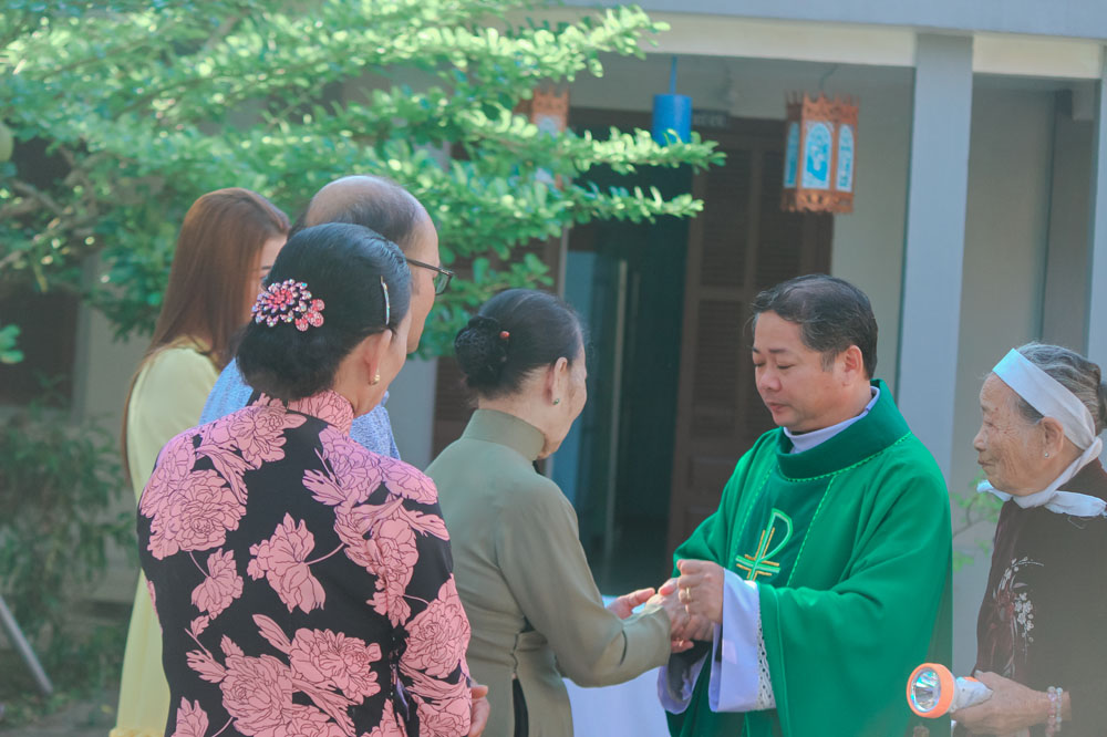 Thánh lễ khép lại, nhiều người đã ngay lập tức chạy đến chào thăm cha, ôm cha, dúi cho cha những món quà chứa đựng nhiều giá trị tinh thần to lớn, ghi với cha một tấm hình kỷ niệm. Có lẽ mỗi người cũng đã đọc được những lời tâm tình cha. Và đáp lại tâm tình đó, rất nhiều lời bày tỏ lời tri ân thật cảm động về tất cả những gì cha đã làm cho Giáo sở. Quả thật, cha như một người quản gia, một vị mục tử gần gũi đã được thể hiện qua đời sống của Cha. Sự thân thiện, những cuộc thăm viếng, động viên với người nghèo khổ, bệnh tật, hay những ngày cha đi trao Mình Thánh Chúa cho quý ôn mệ. Rồi sự bình dân của cha khi cùng ngồi uống cà phê với mọi người. Cha cũng tạo ra các buổi gặp mặt huynh đệ để chia sẻ tâm tình với mọi người. Rồi những ngày vất vả, khổ cực nắng mưa, suy nghĩ chạy vạy để xây dựng những cơ sở vật chất cho Giáo sở, từ nhà thờ cho đến trường học, nhà mục vụ. Và cả những lúc cha cùng đồng hành với các em Giới trẻ để đi lượm những lon bia, chai nước để giúp người hoàn cảnh khó khăn. Hay hình ảnh rất đẹp cha cùng các em Giới trẻ bợ những tấm tôn, những lẻ đồng tay để giúp sửa nhà quý ôn mệ. Thật là cảm động!