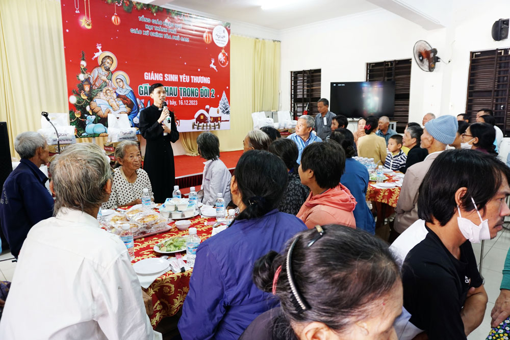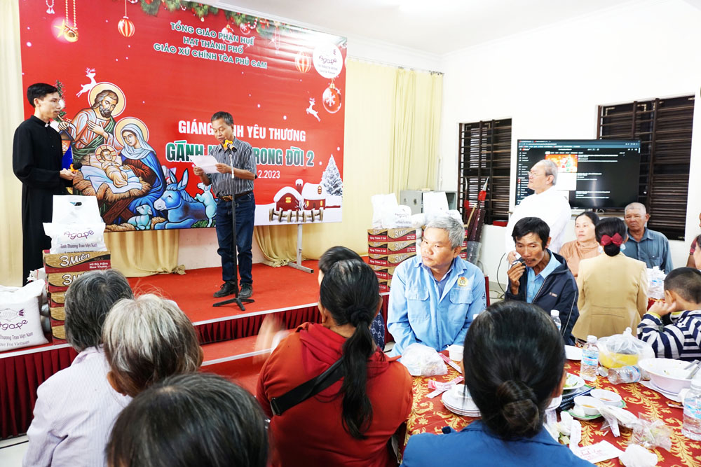 “Gánh Nhau Trong Đời 2” là bữa cơm được tổ chức lúc 10g00 thứ Bảy ngày 16.12.2023 tại hội trường nhà mục vụ Giáo xứ, với sự hiện diện của 220 bà con nghèo khó không cùng tôn giáo.