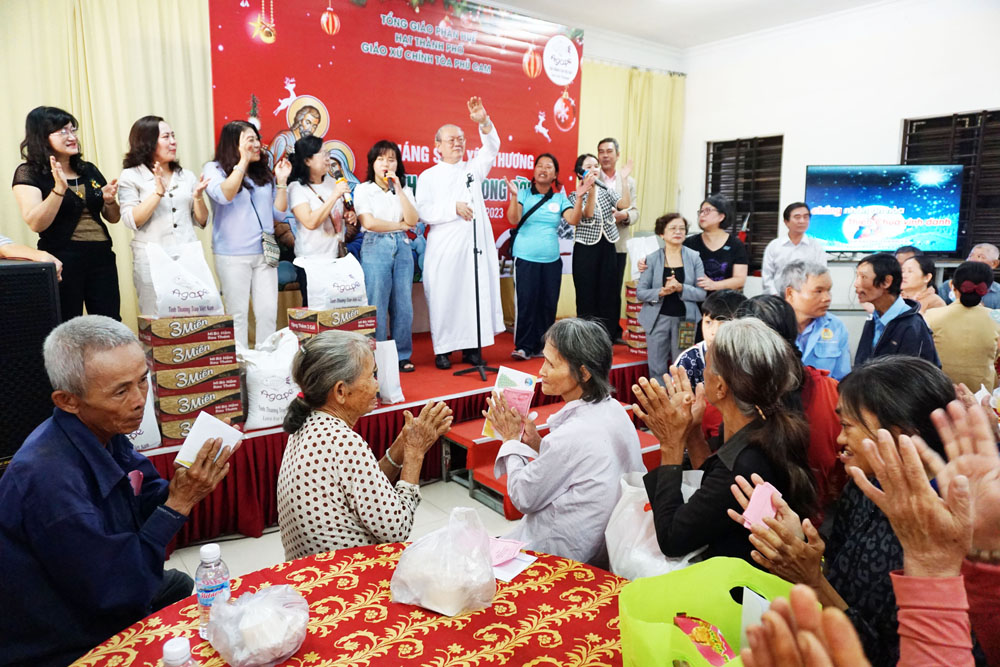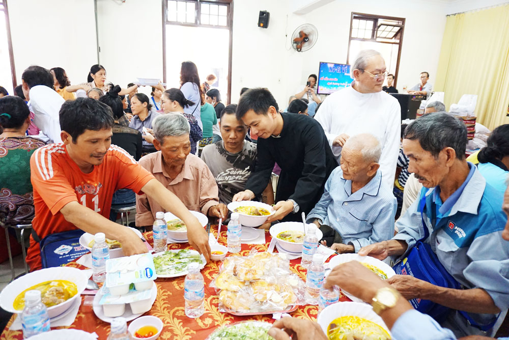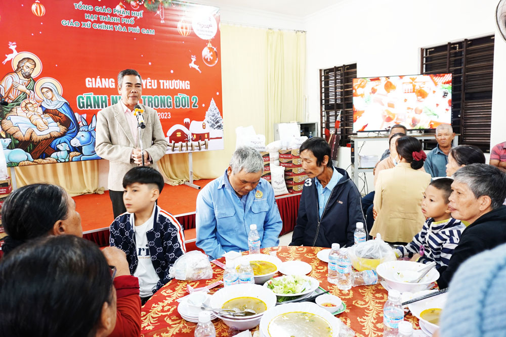 Duy trì tổ chức bữa ăn ngon dành cho những bà con Lương Dân nghèo được tổ chức lần thứ nhất dịp mừng Lễ Chúa Giáng sinh ngày 23.12.2022. Năm nay, cũng từ chiến dịch Mùa Vọng mang tên “Cọng Rơm Yêu Thương”, Cha Quản xứ Đaminh Phan Hưng và quý Cha Phó với sự đồng thuận của cộng đoàn Giáo xứ thực hiện qua việc hy sinh tiền tiêu, tiền chợ hàng ngày đặt vào hòm cúng trong nhà thờ tùy lòng rộng mở của mỗi người. Đến cuối Mùa Vọng khi kết thúc chiến dịch, số tiền sẽ được dùng vào chi phí tổ chức bữa cơm dành cho các bà con nghèo, có hoàn cảnh khó khăn trong thành phố không cùng tín ngưỡng. Ngoài sự đóng góp quý báu của nhiều giáo dân trong Giáo xứ còn có sự hỗ của một số ân nhân, bà con đồng hương xa gần và còn có các phần quà được trao tặng đến từ lòng quảng đại của cô Têrêxa Nguyễn Thị Mai Chi (Nhóm thiện nguyện Agape – Love For Vietnam – Tình thương trao Việt Nam)