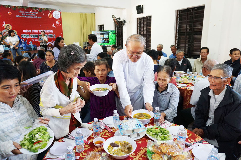 Cảm động và ấn tượng với hình ảnh của những Vị Mục Tử, của quý Chức… ân cần hướng dẫn, tận tình chăm lo, thân ái chào mời, tự tay phục vụ thức ăn, nước uống cho bà con. Khung cảnh bữa ăn thật ấm cúng, mọi người đều cảm nhận được hơi ấm của tình yêu gia đình là được yêu thương đùm bọc, được sẻ chia, lan tỏa tình yêu Chúa Giáng Sinh đến với mọi người: “Ngôi Lời đã làm người và ở cùng chúng ta” (Ga 1,14).