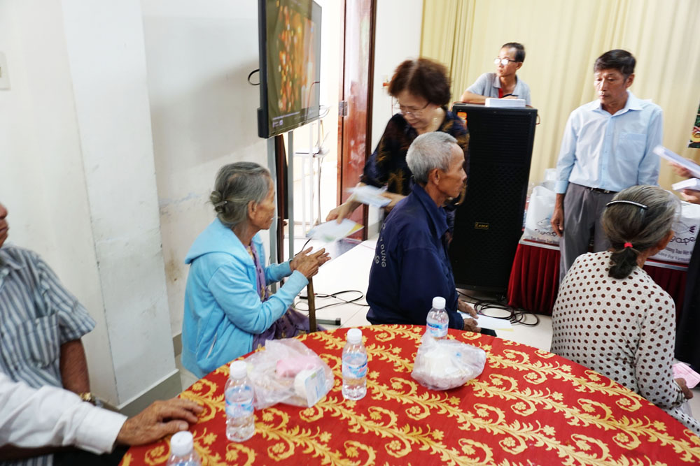 Bữa cơm đã đem đến cho bà con không những no, mà còn rất ngon và bổ dưỡng. Sau đó, bà con nhận được những phần quà là những phong bì Lời Chúa cùng những lời chúc Giáng Sinh năm mới của Cha Quản xứ và những món quà đến từ Cô Têrêxa Nguyễn Thị Mai Chi gồm có gạo, mì ăn liền, gia vị cần dùng cho những bữa ăn trong gia đình. Những món quà thật hữu ích cho đời sống tinh thần cũng như thường nhật của bà con mang đậm “Tình Chúa Nối Kết Tình Người”.