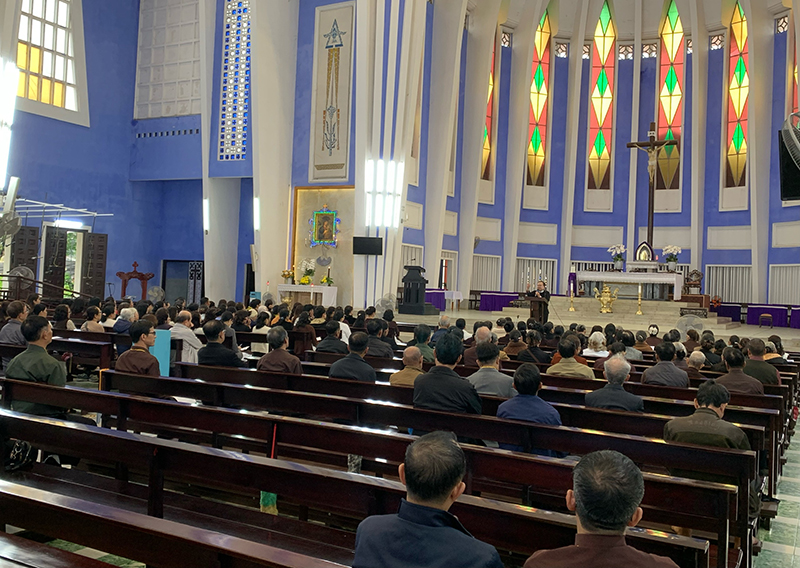 Anh chị em Phan Sinh Tại Thế miền Huế đã quy tụ trong buổi tĩnh tâm trang nghiêm và sốt sắng, dưới sự đồng hành của Cha Trợ úy Phan Sinh Tại Thế miền Huế cùng Cha Bề trên Dòng Chúa Cứu Thế Huế.