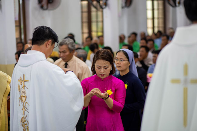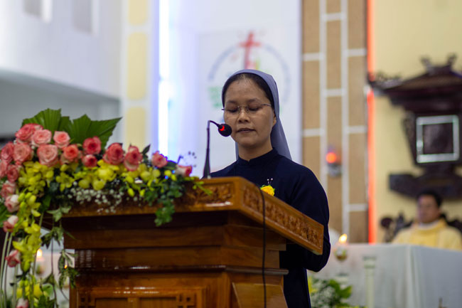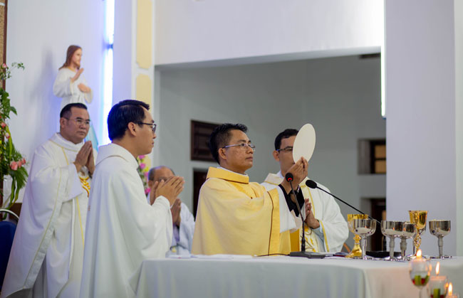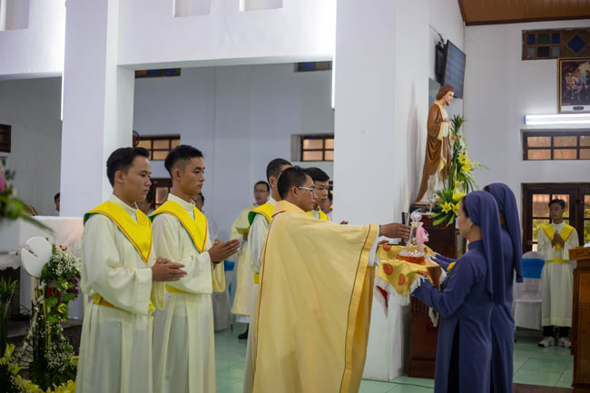 Sau bài giảng, Thánh lễ tiếp tục với phần phụng vụ Thánh Thể. Bên Bàn Tiệc Thánh, Tân linh mục Maria Gioan Baotixita đã sốt sắng dâng lên Thiên Chúa hy lễ đầu tiên với tâm tình cảm mến thật linh thiêng.